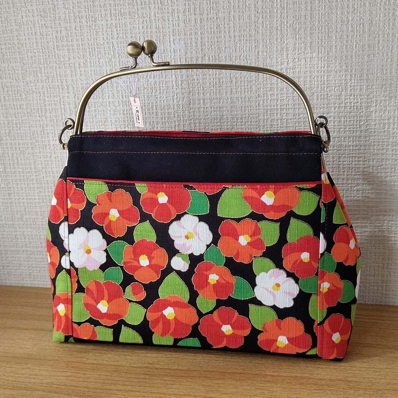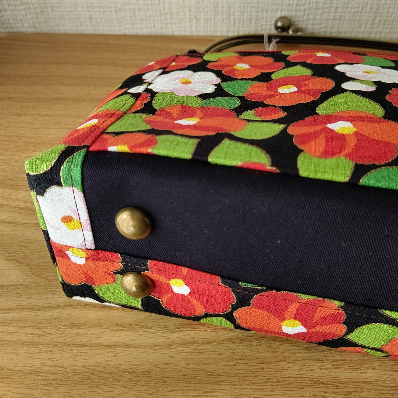 ポケット後ろは椿柄布の地色と合わせて黒にしました。